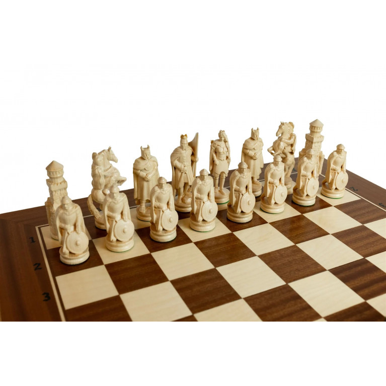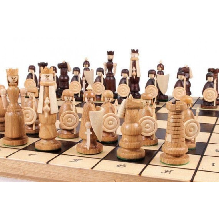 Művészi összecsukható fa sakk "Lovagok" részletesen kifaragott sakkfigurákkal 645*645 PL121